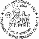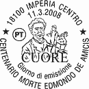 | Vignetta | raffigura, in primo piano, un ritratto dello scrittore Edmondo De Amicis e, sullo sfondo, un'illustrazione ispirata al libro "Cuore". Completano il francobollo la leggenda "EDMONDO DE AMICIS 1846 - 1908" e "CUORE", la scritta "ITALIA" ed il valore "€ 0,60". |