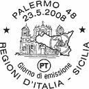| Vignetta | Il francobollo è delimitata in alto a sinistra da una fascia tricolore che riproduce, all'interno di un occhiello, lo stemma della relativa regione e raffigura la facciata della Cattedrale barocca di Noto (SR) e, a destra, è evidenziato il profilo della regione nel cui interno è rappresentato il triscele, figura di testa a tre gambe, simbolo della Sicilia. Completano il francobollo la rispettiva leggenda "SICILIA", la scritta "ITALIA" ed il valore "€ 0,60". |