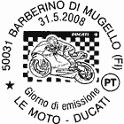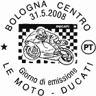 | Vignetta | raffigura, in primo piano, un motociclista in sella alla Ducati Desmosedici GP7, vincitrice del campionato mondiale MotoGP 2007; il fondo, a scacchi bianchi e neri, ricorda la tradizionale bandiera di fine corsa. In alto a destra sinistra è riprodotto il marchio Ducati. Completano il francobollo la leggenda "LE MOTO", la scritta "ITALIA" ed il valore "€ 0,60". |