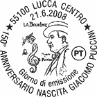 | Vignetta | affigura, a destra, un ritratto del compositore Giacomo Puccini, a sinistra, una chiave di violino e un tralcio di rosa; sullo sfondo sono riportati il titolo dell'opera "La Bohème" e la scritta "Musica di G. Puccini". Completano il francobollo la leggenda "GIACOMO PUCCINI 1858-1924", la scritta "ITALIA" ed il valore "€ 1,50". |