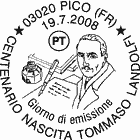 | Vignetta | raffigura, in primo piano a destra, un ritratto dello scrittore Tommaso Landolfi e, a sinistra, due libri, un calamaio, una penna stilografica e dei fogli appena vergati. Completano il francobollo la leggenda "TOMMASO LANDOLFI", le date "1908 - 1979", la scritta "ITALIA" ed il valore "€ 0,60". |