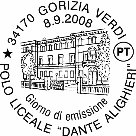 | Vignetta | il francobollo dedicato al Polo Liceale "Dante Alighieri" raffigura la facciata principale di Palazzo Formentini di Gorizia, sede storica dell'istituto scolastico. Completano il francobollo le rispettive leggende "POLO LICEALE "DANTE ALIGHIERI" - GORIZIA", la scritta "ITALIA" ed il valore "€ 0,60". |