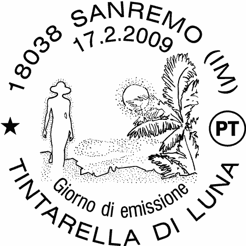 | Vignetta | rappresenta, in grafica stilizzata, uno scenario notturno illuminato dal chiarore della luna piena che filtra attraverso alcune foglie di palma. Completano il francobollo la leggenda "TINTARELLA DI LUNA", la scritta "ITALIA" ed il valore "€ 0,60" |