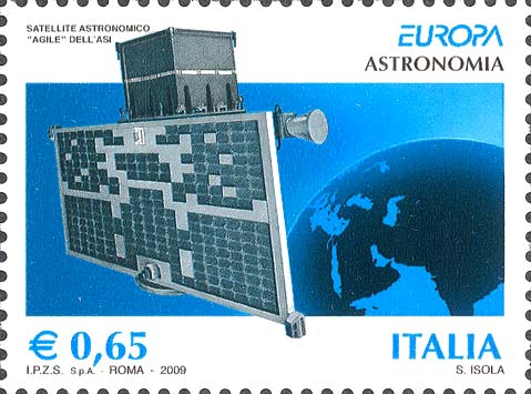Vignettaè dedicata al tema comune "astronomia" e raffigura il satellite astronomico AGILE in orbita e, a destra, un particolare del pianeta Terra. Completano il francobollo le leggende "SATELLITE ASTRONOMICO "AGILE" DELL'ASI", la scritta "ITALIA" ed il valore "€ 0,65"