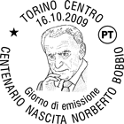 | Vignetta | raffigura un ritratto del filosofo e storico italiano Norberto Bobbio. Completano il francobollo la leggenda "NORBERTO BOBBIO", le date "1909 - 2004", la scritta "ITALIA" e il valore "€ 0,65". |