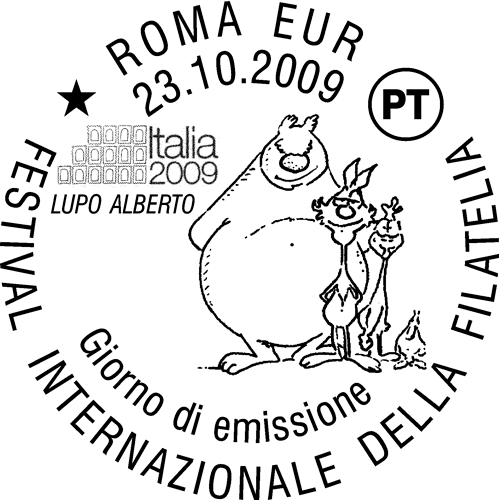 | Vignetta | il francobollo dedicato a Lupo Alberto di Silver rappresenta il personaggio accanto ai suoi indivisibili compagni di avventure, il cane Mosè, la gallina Marta ed Enrico la Talpa. Sul francobollo è riprodotto il logo della manifestazione "Italia 2009". Completano il francobollo le leggende "FESTIVAL INTERNAZIONALE DELLA FILATELIA", "GIORNATA DEL COLLEZIONISMO I FUMETTI ITALIANI", la scritta "ITALIA", il valore "€ 1,00" e il rispettivo marchio distintivo del fumetto: "LUPO ALBERTO". |