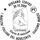 | Vignetta | riproduce un particolare della scultura in marmo denominata "Guantanamera" realizzata da Giacomo Manzù nel 1970 e appartenente ad una collezione privata a New York; completano il francobollo le leggende "I MAESTRI ITALIANI DEL NOVECENTO", "GIACOMO MANZÙ", "GUANTANAMERA", la scritta "ITALIA" e il valore "€ 0,60". |