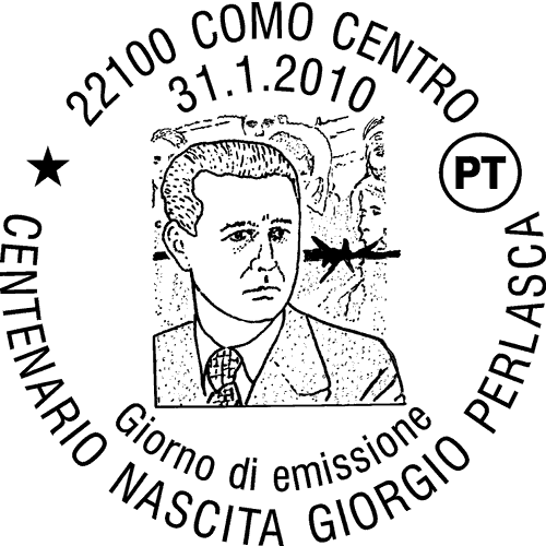| Vignetta | riproduce, in primo piano a sinistra, un ritratto di Giorgio Perlasca e, alle sue spalle, l'immagine di un gruppo di persone, testimoni simbolici del suo eroismo; al centro è rappresentato un filo spinato stilizzato. Completano il francobollo la leggenda "GIORGIO PERLASCA", le date "1910 - 1992", la scritta "ITALIA" e il valore "€ 0,60" |