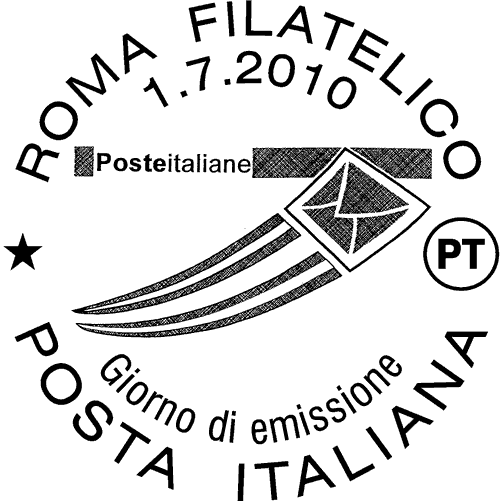 | Vignetta | raffigura una busta che idealmente spicca il volo, lasciando dietro di sé una scia formata dai colori della bandiera italiana. In alto è riprodotto il logo di Poste Italiane nelle cui bande laterali è ripetuta, in modo casuale, la scritta "POSTE ITALIANE". Completano il francobollo la scritta "ITALIA" e il rispettivo valore "€ 0,05". |