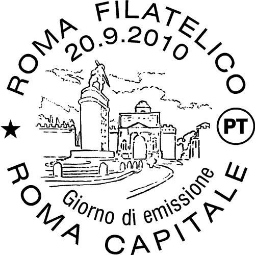 | Vignetta | riproduce un acquerello raffigurante una veduta di Piazzale di Porta Pia in Roma con in primo piano il Monumento al Bersagliere, opera in marmo e bronzo realizzata dallo scultore Publio Morbiducci e, sullo sfondo, l'omonima Porta che si apre nelle Mura Aureliane. Completano il francobollo la leggenda "ROMA CAPITALE", la scritta "ITALIA" e il valore "€ 0,60". |