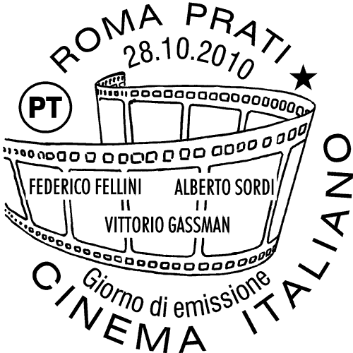 | Vignetta | i tre francobolli, uniti tra di loro lungo il lato di mm 40, sono impressi in un riquadro perforato posto al centro del foglietto. Fuori dal riquadro prosegue il disegno della pellicola cinematografica raffigurata nei francobolli; in alto a sinistra è riportata la scritta "CINEMA ITALIANO" e in basso a sinistra è riprodotto il logo di Poste Italiane. |