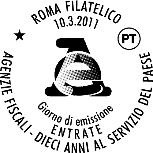 | Vignetta | riproduce il logo della rispettiva agenzia fiscale, il cui motivo è ripetuto in grafica stilizzata nei fondini di ogni vignetta. Completano il francobollo le rispettive leggende "ENTRATE", l'indicazione "DECENNALE DELLE AGENZIE FISCALI", la scritta "ITALIA" e il valore "€ 0,60". |