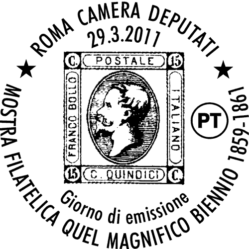 | Vignetta | riproduce il francobollo con l'effigie di Vittorio Emanuele II da 15 centesimi emesso nel 1863, il primo in cui compare l'indicazione "ITALIANO". Completano il francobollo la leggenda "QUEL MAGNIFICO BIENNIO 1859 - 1861", la scritta "ITALIA" e il valore "€ 0,60". |