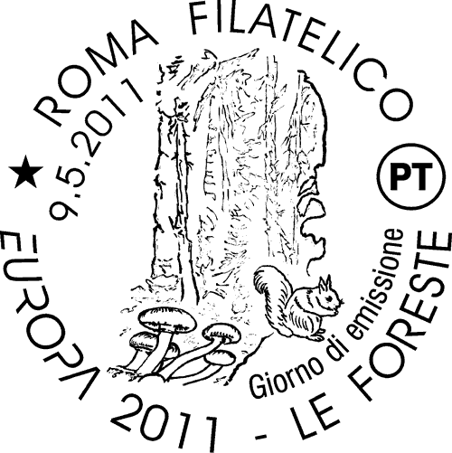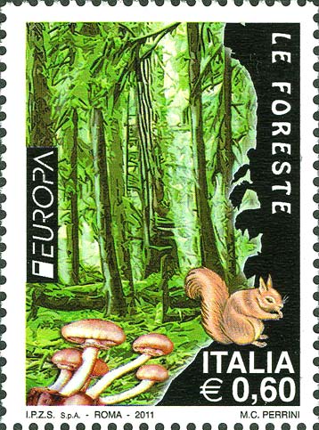 Vignettadedicato al tema "Le foreste" raffigura immagini caratteristiche di un paesaggio boschivo con alberi ad alto fusto. Completano il francobollo il logo di EUROPA, la leggenda "LE FORESTE", la scritta "ITALIA" e il rispettivo valore " 0,60".