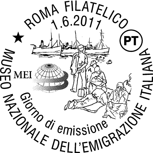 | Vignetta | riproduce il dipinto di Angiolo Tommasi realizzato nel 1896 dal titolo "Gli emigranti", custodito nella Galleria Nazionale di Arte Moderna di Roma e, in basso, il logo del MEI, Museo Nazionale dell'Emigrazione Italiana. Completano il francobollo la leggenda "ANGIOLO TOMMASI 'GLI EMIGRANTI'", la scritta "ITALIA" e il valore "€ 0,60". |