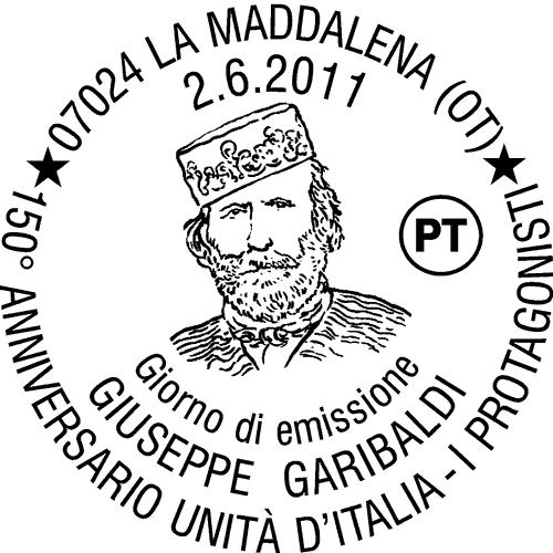 | Vignetta | Giuseppe Garibaldi un particolare di un ritratto fotografico di Giuseppe Garibaldi del 1860, affiancato da un particolare dell'opera di Antonio Licata "L'entrata di Garibaldi a Napoli il 7 settembre 1860" (Museo Nazionale di San Martino a Napoli). Completano il francobollo le rispettive leggende "GIUSEPPE GARIBALDI", la scritta "ITALIA" e il valore "€ 0,60". |
