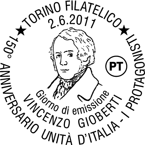 | Vignetta | Vincenzo Gioberti una litografia di Vincenzo Roscioni raffigurante Vincenzo Gioberti (Museo Centrale del Risorgimento di Roma), affiancato da un particolare della litografia di Franz Wenzel "Manifestazione di gioia dei napoletani per festeggiare Pio IX e Gioberti" (Museo Centrale del Risorgimento di Roma). Completano il francobollo le rispettive leggende "VINCENZO GIOBERTI", la scritta "ITALIA" e il valore "€ 0,60". |