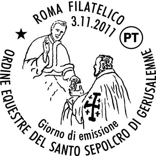 | Vignetta | riproduce l'arazzo dipinto dall'artista Mario Albertella, agli inizi del Novecento, dal titolo "SAN PIO X E L'ORDINE EQUESTRE DEL SANTO SEPOLCRO DI GERUSALEMME" andato distrutto durante la seconda guerra mondiale; in alto a destra è rappresentato l'emblema dell'Ordine. Completano il francobollo la leggenda "ORDINE EQUESTRE DEL SANTO SEPOLCRO DI GERUSALEMME", la scritta "ITALIA" e il valore "€ 0,60". |