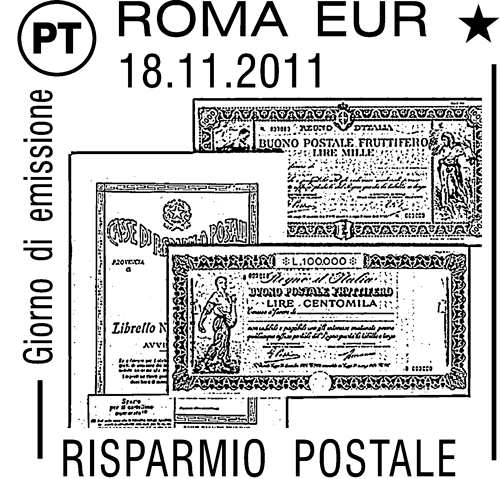 | Vignetta | nel francobollo di € 0,60 sono riprodotti esemplari più datati di un libretto di risparmio postale e di due buoni postali fruttiferi. Completano ciascun francobollo la leggenda "RISPARMIO POSTALE", la scritta "ITALIA" e il valore "€ 0,60". |