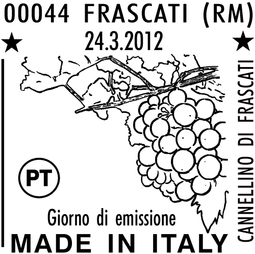 Raffigura un vigneto e un grappolo d'uva tipici dei vini DOCG a cui il francobollo è dedicato: Cannellino di Frascati. Completano il francobollo le rispettive leggende "CANNELLINO DI FRASCATI DOCG", le scritte "ITALIA" e "MADE IN ITALY" e il valore " 0,60".