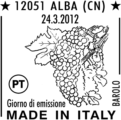 Raffigura un vigneto e un grappolo d'uva tipici dei vini DOCG a cui il francobollo è dedicato: Barolo. Completano il francobollo le rispettive leggende "BAROLO DOCG", le scritte "ITALIA" e "MADE IN ITALY" e il valore " 0,60".