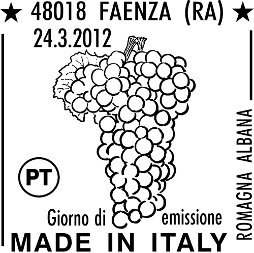 Raffigura un vigneto e un grappolo d'uva tipici dei vini DOCG a cui il francobollo è dedicato: Romagna albana. Completano il francobollo le rispettive leggende "ROMAGNA DOCG ALBANA", le scritte "ITALIA" e "MADE IN ITALY" e il valore " 0,60".