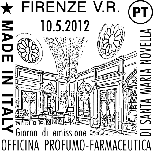 raffigura la Sala Vendite dell'Officina Profumo - Farmaceutica di Santa Maria Novella in Firenze, una delle più antiche farmacie ancora attive, arredata con scaffali in stile neogotico, fondata nella prima metà del XIII secolo dai frati domenicani. Completano il francobollo le leggende "MADE IN ITALY" e "OFFICINA PROFUMO - FARMACEUTICA DI SANTA MARIA NOVELLA", la scritta "ITALIA" e il valore " 0,75".