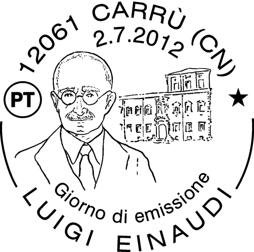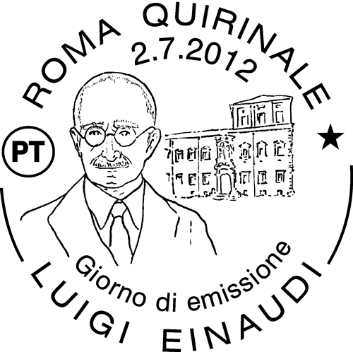 | Vignetta | raffigura, in primo piano, un ritratto di Luigi Einaudi e, sullo sfondo, il Palazzo del Quirinale, sede della Presidenza della Repubblica. Completano il francobollo la leggenda "LUIGI EINAUDI 1874-1961", la scritta "ITALIA" e il valore "€ 0,60". |