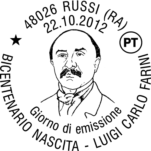 | Vignetta | raffigura un ritratto di Luigi Carlo Farini, delimitato in basso da un nastro tricolore. Completano il francobollo la leggenda "LUIGI CARLO FARINI 1812-1866", la scritta "ITALIA" e il valore "€ 0,60. |