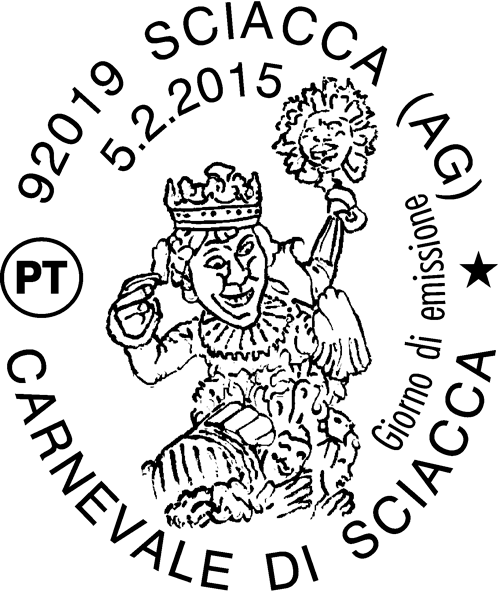 | Vignetta | entro una cornice lineare policroma, ciascuna raffigura un carro allegorico, e precisamente: Carnevale di Sciacca – Carro simbolo della sfilata carnevalesca è quello di Peppe Nappa, maschera allegorica risalente al diciannovesimo secolo e protagonista finale del tradizionale rogo; intorno altre maschere di cartapesta tipiche del Carnevale saccense. Completano il francobollo la leggenda “CARNEVALE DI SCIACCA”, la scritta “ITALIA” e il valore “ 0,80”. |