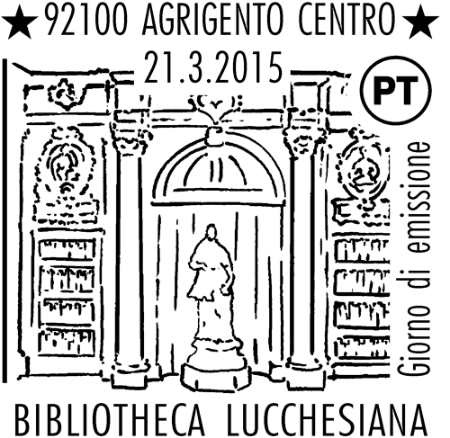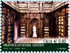 | Vignetta | riproducono rispettivamente: il Salone monumentale della Biblioteca nazionale “Vittorio Emanuele III” in Napoli; il “Parlamentino” dell’Istituto “Guglielmo Tagliacarne”; la Sala II della Biblioteca Lucchesiana in Agrigento dove troneggia, al centro, la statua del donatore Andrea Lucchesi Palli, opera dello scultore Giuseppe Orlando del 1766. Completano i francobollile rispettive leggende “BIBLIOTECA NAZIONALE VITTORIO EMANUELE III - NAPOLI”, “ISTITUTO GUGLIELMO TAGLIACARNE - ROMA” e “BIBLIOTHECALUCCHESIANA - AGRIGENTO”, la scritta“ITALIA” e il valore “ 0,80”. |