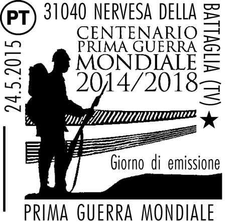 | Vignetta | riproducono personaggi e scene della Prima Guerra Mondiale, e precisamente, rispettivamente da sinistra a destra in senso orario: Francesco Baracca, asso dell’aviazione italiana, accanto al suo velivolo; una postazione di artiglieria da montagna del Corpo degli Alpini del Regio Esercito Italiano; una trincea con una postazione di mitraglieri del Regio Esercito Italiano durante la battaglia di Gorizia; un MAS (Motoscafo Anti Sommergibile) della Regia Marina Militare Italiana. Completano i francobolli la leggenda comune “PRIMA GUERRA MONDIALE”, le rispettive leggende “IN CIELO”, “IN MONTAGNA”, “IN TRINCEA” e “IN MARE”, la scritta “ITALIA” e il valore “ € 0,80”. |
