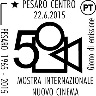 | Vignetta | riproduce il logo del 50° anniversario della Mostra internazionale del nuovo cinema di Pesaro, in primo piano su un fondino caratterizzato da una rappresentazione pittorica della costa adriatica. Completano il francobollo le leggende “MOSTRA INTERNAZIONALE DEL NUOVO CINEMA” e “PESARO 1965 -2015 ”, la scritta “ITALIA” e il valore “€ 0,80”. |