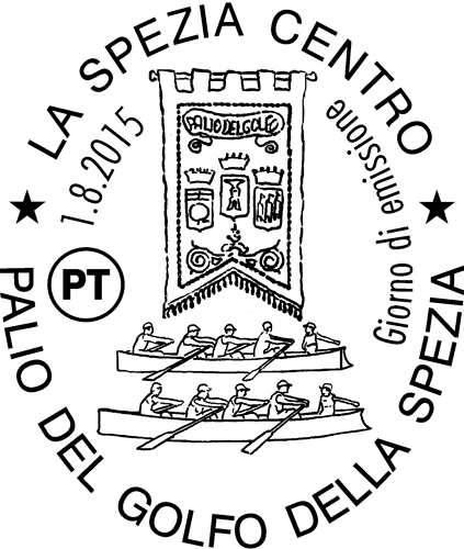 | Vignetta | racchiusa in una cornice bicolore, raffigura un momento del Palio del Golfo della Spezia, gara remiera tra scafi simili al gozzo nazionale; in alto a destra è presente lo stendardo del Palio consegnato alla borgata vincitrice che ha il diritto di conservarlo per un anno. Completano il francobollo la leggenda “PALIO DEL GOLFO DELLA SPEZIA”, la scritta “ITALIA” e il valore “€ 0,95”. |