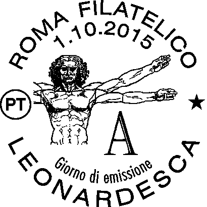 | Vignetta | entro la medesima impostazione grafica, raffigurano disegni di Leonardo da Vinci, e in particolare: • francobollo relativo alla tariffa A: un particolare del disegno di Leonardo da Vinci, Le proporzioni dell’uomo secondo Vitruvio, esposto al Gabinetto dei disegni e stampe delle Gallerie dell’Accademia di Venezia; • francobollo relativo alla tariffa Azona1: vite aerea, precursore dell’elicottero, particolare del Manoscritto sulle macchine volanti, esposto nella Bibliotheque de l’Institut de France di Parigi; • francobollo relativo alla tariffa Azona2: progettazione di un’ala meccanica, particolare del Codice Atlantico esposto nella Veneranda Biblioteca Ambrosiana di Milano; • francobollo relativo alla tariffa Azona3: balestra gigante, particolare del Codice Atlantico esposto nella Veneranda Biblioteca Ambrosiana di Milano. In ognuna delle vignette, entro una banda in basso, è ripetuta, in microscrittura, senza soluzione di continuità, la dicitura “MINISTERO DELLO SVILUPPO ECONOMICO”. Completano i francobolli la leggenda “LEONARDO DA VINCI”, le rispettive diciture “A”, “Azona1”, “Azona2”, “Azona3” e la scritta “ITALIA”. |
