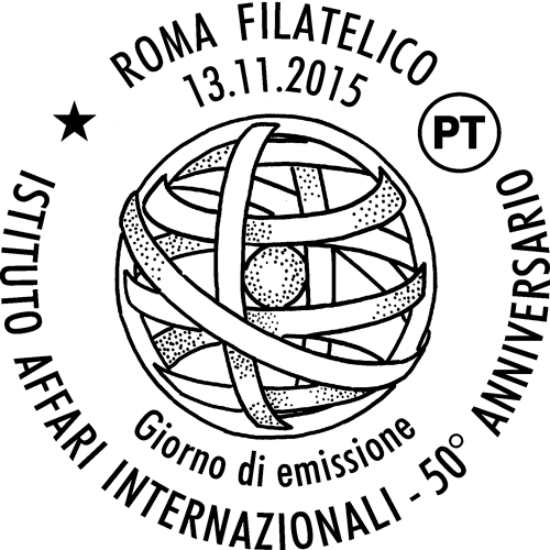 | Vignetta | raffigura una rielaborazione grafica del logo dell’Istituto per gli Affari Internazionali. Completano il francobollo le leggende “ISTITUTO AFFARI INTERNAZIONALI”, “50° ANNIVERSARIO” e “IAI”, la scritta “ITALIA” e il valore “ € 0,95”. |