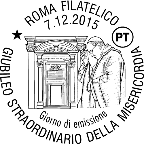 | Vignetta | raffigurano il medesimo ritratto di Papa Francesco affiancato, a sinistra, di volta in volta, da una delle quattro Porte Sante delle rispettive Basiliche papali di San Pietro in Vaticano, di Santa Maria Maggiore, di San Giovanni in Laterano e di San Paolo fuori le Mura. Completano i francobolli la leggenda comune “GIUBILEO STRAORDINARIO DELLA MISERICORDIA” e le rispettive leggende “BASILICA DI SAN PIETRO - PORTA SANTA”, “BASILICA DI SANTA MARIA MAGGIORE - PORTA SANTA”, “BASILICA DI SAN GIOVANNI IN LATERANO - PORTA SANTA” e “BASILICA DI SAN PAOLO FUORI LE MURA - PORTA SANTA”, la scritta “ITALIA” e i rispettivi valori “€ 0,95”, “€ 1,00”, “€ 2,20”, “€ 2,90”. |