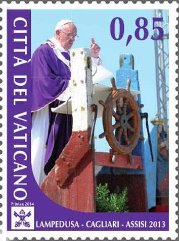 L’emissione dei viaggi di quest’anno è costituita da una serie composta da due valori e da un libretto filatelico ed è dedicata ai viaggi apostolici di Papa Francesco del 2013 in Italia a Lampedusa, Cagliari ed Assisi, ed in Brasile a Rio de Janeiro. L’Ufficio Filatelico e Numismatico è lieto di comunicare ai suoi clienti che il ricavato della vendita del francobollo e del libretto filatelico dedicati ai viaggi di Papa Francesco in Italia e raffiguranti quello nell’isola di Lampedusa, simbolo della speranza per una vita migliore ma anche del dramma di un viaggio spesso mortale per i migranti dei nostri giorni, verrà donata al Santo Padre per opere di carità rivolte ai migranti stessi. Ricordiamo le parole di monito, speranza e ringraziamento pronunciate dal Santo Padre in occasione del viaggio e riportate per intero sul libretto filatelico «Immigrati morti in mare, da quelle barche che invece di essere una via di speranza sono state una via di morte. Così il titolo dei giornali. Quando alcune settimane fa ho appreso questa notizia, che purtroppo tante volte si è ripetuta, il pensiero vi è tornato continuamente come una spina nel cuore che porta sofferenza. E allora ho sentito che dovevo venire qui oggi a pregare, a compiere un gesto di vicinanza, ma anche a risvegliare le nostre coscienze perché ciò che è accaduto non si ripeta. Non si ripeta per favore. Prima però vorrei dire una parola di sincera gratitudine e di incoraggiamento a voi, abitanti di Lampedusa e Linosa, alle associazioni, ai volontari e alle forze di sicurezza, che avete mostrato e mostrate attenzione a persone nel loro viaggio verso qualcosa di migliore. Voi siete una piccola realtà, ma offrite un esempio di solidarietà! Grazie!» (Lampedusa, 8 luglio 2013).