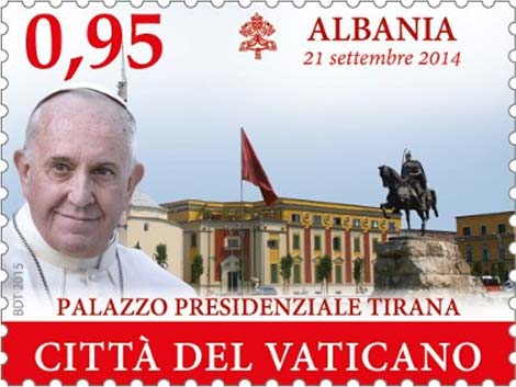 La serie filatelica che celebrai viaggi apostolici di Papa Francesco del 2014 è composta da quattro valori, scelti in ragione del costo di invio di una spedizione ordinaria dal Vaticano al Paese oggetto del pellegrinaggio del Santo Padre. Il valore da 2,30 euro celebra il viaggio apostolico del Santo Padre in occasione della Sesta Giornata della Gioventù Asiatica svolta nella diocesi di Daejeon in Corea del Sud tra il 13 e il 18 di agosto. L'immagine riproduce la Casa Blu di Seul, residenza del Presidente della Repubblica della Corea del Sud che ospita, generalmente, i ricevimenti di Stato. Gli altri tre valori sono da 95 centesimi e ricordano il viaggio in Albania, del 21 settembre, quello in Turchia, tenutosi dal 28 al 30 novembre, e la visita al Parlamento Europeo a Strasburgo del 25 novembre. Le immagini, come consuetudine, riproducono luoghi simbolo delle nazioni o istituzioni in questione: il Palazzo Presidenziale di Tirana, la Moschea Blu di Istanbul e la sede del Parlamento Europeo.