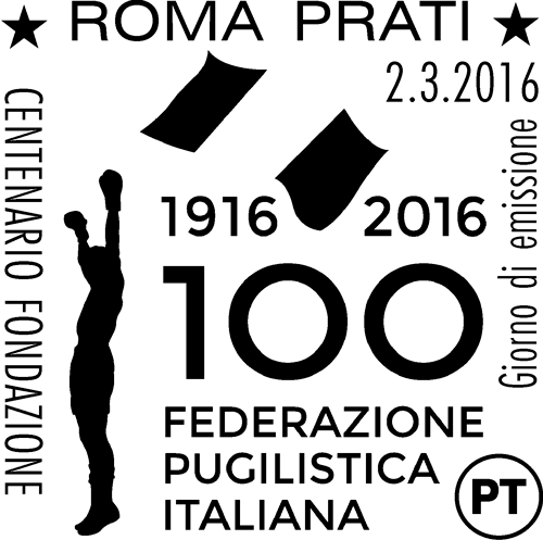 | Vignetta | raffigura, in primo piano su un fondino di guantoni da boxe stilizzati, il logo del centenario della Federazione Pugilistica Italiana. Completano il francobollo la scritta “ITALIA” e il valore “€ 0,95”. |