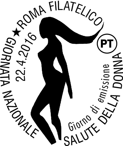 | Vignetta | affigura la silhouette di una donna in primo piano su uno sfondo acquerellato rosa. Completano il francobollo la leggenda “GIORNATA NAZIONALE SALUTE DELLA DONNA”, la scritta “ITALIA” e il valore “ € 0,95”. |