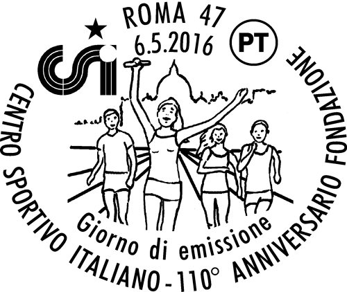 | Vignetta | raffigura dei ragazzi che, su una ideale pista che parte dalla Basilica di San Pietro in Roma, svolgono una gara di staffetta. In alto a sinistra è riprodotto il logo del Centro Sportivo Italiano. Completano il francobollo le leggende “CENTRO SPORTIVO ITALIANO” e “110 ANNI DI EDUCAZIONE E SPORT”, la scritta “ITALIA” e il valore “€ 0,95”. |