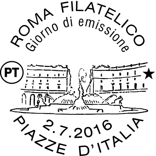 | Vignetta | raffigura una veduta di Piazza della Repubblica in Roma con in primo piano la Fontana delle Naiadi, opera dello scultore Mario Rutelli, e sullo sfondo, i due palazzi porticati dell’architetto Gaetano Koch. Entro una banda verticale, a destra, è ripetuta in microscrittura, senza soluzione di continuità, la dicitura “MINISTERO DELLO SVILUPPO ECONOMICO”. Completano il francobollo la leggenda “PIAZZA DELLA REPUBBLICA - ROMA”, la dicitura “B” e la scritta “ITALIA”. |