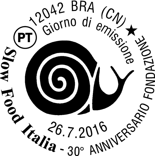 | Vignetta | riproduce il logo dell’Associazione Slow Food Italia. Completano il francobollo le date “1986 2016” , la scritta “ITALIA” e il valore “ € 0,95” |