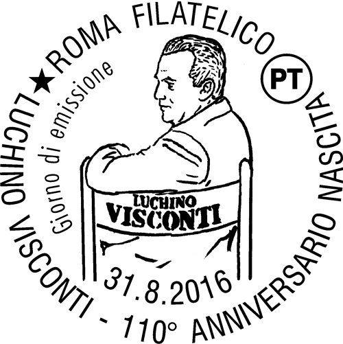 - il francobollo dedicato a Luchino Visconti raffigura il regista seduto su una classica sedia da regista. Completano il francobollo le rispettive leggende e “LUCHINO VISCONTI”, le date “1906-1976”, la scritta “ITALIA” e il valore “€ 0,95”.