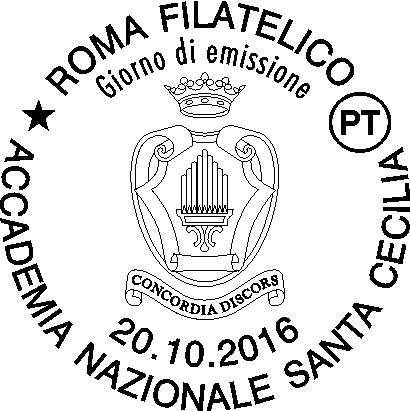 Completa il francobollo le rispettive leggende “ACCADEMIA NAZIONALE DI SANTA CECILIA”, la scritta “ITALIA” e il valore “€ 0,95”. |