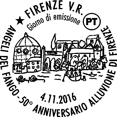 | Vignetta | raffigura l’alluvione di Firenze del 1966 “interpretata”, attraverso un disegno, dai bambini di una scolaresca. Completano il francobollo le leggende “ANGELI DEL FANGO” e “50° ANNIVERSARIO DELL’ALLUVIONE DI FIRENZE”, la scritta “ITALIA” e il valore “ € 0,95”. |