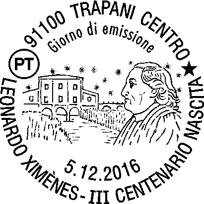 | Vignetta | raffigura, a destra, un ritratto di Leonardo Ximènes tratto da un’incisione calcografica conservata presso il Museo Galileiano a Firenze, e, a sinistra, la “Casa Rossa” costruita dallo scienziato per regolare il deflusso dell’acqua del lago di Castiglione della Pescaia verso il mare attraverso il Canale Reale, consentendo di bonificare la Maremma Grossetana; in alto, un cielo stellato in riferimento alla sua attività di valente astronomo. Completano il francobollo le leggende “LEONARDO XIMÈNES”, “ASTRONOMO E IDRAULICO” e le date “1716 - 1786”, la scritta “ITALIA” e il valore “ € 0,95”. |