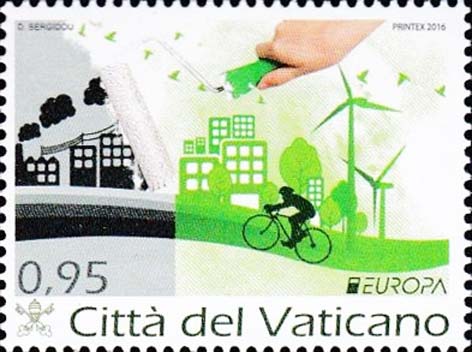 Il tema è molto caro al Santo Padre che nelle Sue omelie e nella Sua seconda enciclica, «Laudato sì», ha parlato della cura di quella che Lui ha chiamato la «casa comune» sottolineando, con un appello personale, l’esigenza «... di un confronto che ci unisca tutti, perché la sfida ambientale che viviamo, e le sue radici umane, ci riguardano e ci toccano tutti». In particolare, Papa Francesco, ha espresso riconoscenza ed incoraggiamento per «...tutti coloro che, nei più svariati settori dell’attività umana, stanno lavorando per garantire la protezione della casa che condividiamo. Meritano una gratitudine speciale quanti lottano con vigore per risolvere le drammatiche conseguenze del degrado ambientale nella vita dei più poveri del mondo». L’emissione filatelica che celebra la tematica consiste in un minifoglio di sei valori da 95 centesimi di euro riproducente, nei francobolli, il disegno originale e nelle bandelle laterali, alcuni elementi da questo ripresi e rielaborati. Completa la grafica un particolare stilizzato della cupola di San Pietro.