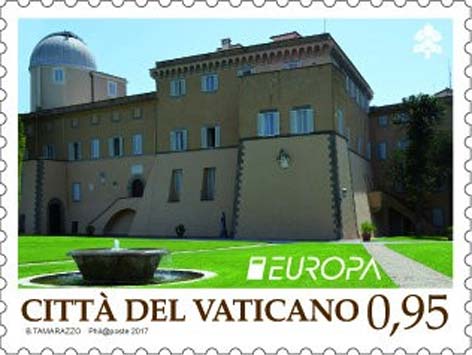 Come da tradizione l’Ufficio Filatelico e Numismatico partecipa all’iniziativa di Posteurop per lo sviluppo di una tematica comune a tutte le amministrazioni postali ad essa aderenti: i Castelli sono il tema designato per il 2017. La serie realizzata per l’occasione dall’Ufficio si compone di due francobolli; nel valore da 0,95 euro è raffigurata una facciata del palazzo Pontificio di Castel Gandolfo, su cui svetta l’osservatorio astronomico, la Specola Vaticana. Il palazzo, sorto sui resti di una parte dell’Albanum Domitiani, residenza di campagna dell’imperatore Domiziano, apparteneva originariamente alla famiglia dei Gandolfi, da cui prende il nome l’odierna cittadina laziale, per poi diventare sotto il pontificato di Clemente VII patrimonio della Santa Sede. Nei secoli ha subito diversi lavori di ampliamento e ristrutturazione fino ad assumere l’attuale aspetto architettonico ed è stato la tradizionale meta di villeggiatura dei pontefici sin da quando all’inizio del ‘600 Urbano VIII lo fece diventare la sua residenza estiva. Papa Francesco, l’unico a non avervi mai trascorso le sue vacanze, ha deciso di condividerne le stanze e i luoghi più esclusivi con i fedeli trasformandolo in un museo. Il valore da 1,00 euro ritrae il palazzo del Belvedere attualmente parte dei Musei Vaticani: esso fu eretto da Innocenzo VIII (1484-1492) ed è situato all’estremità settentrionale del colle Vaticano. Il francobollo ne ritrae una parte della facciata con la caratteristica merlatura impreziosita da decorazioni di vasi.
